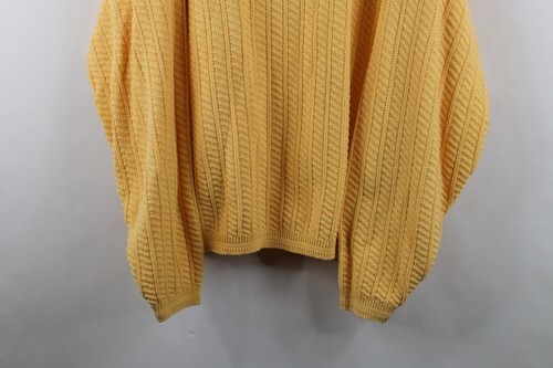 Vtg 90s Streetwear Mens XL Faded Blank Cotton Knit Crewneck Sweater Yellow USA