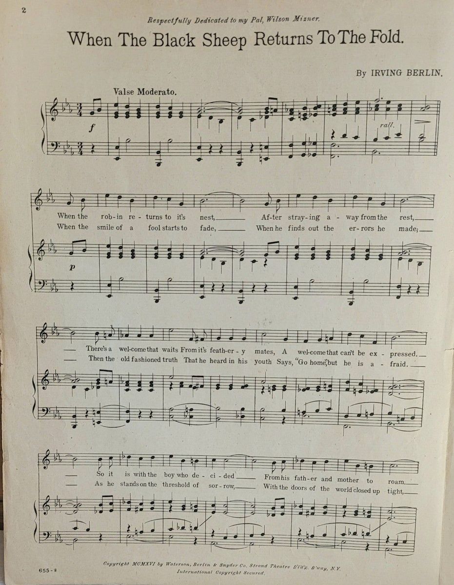 Antique When the Black Sheep Returns to the Fold XL Sheet Music 1916 Vintage Complete