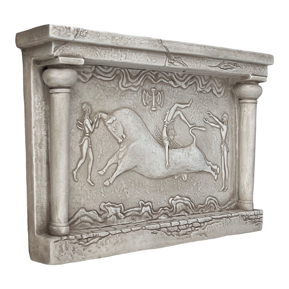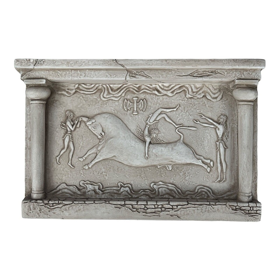 Bull Leaping Minoan Fresco Bas Relief Wandtablette