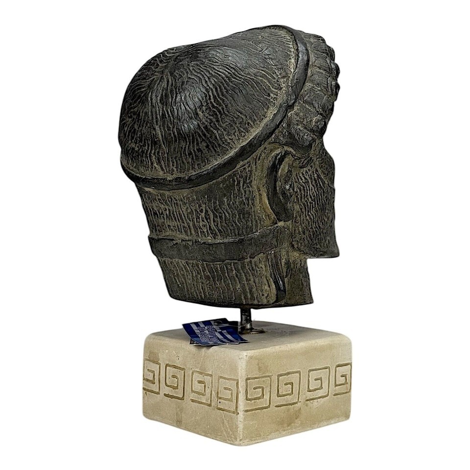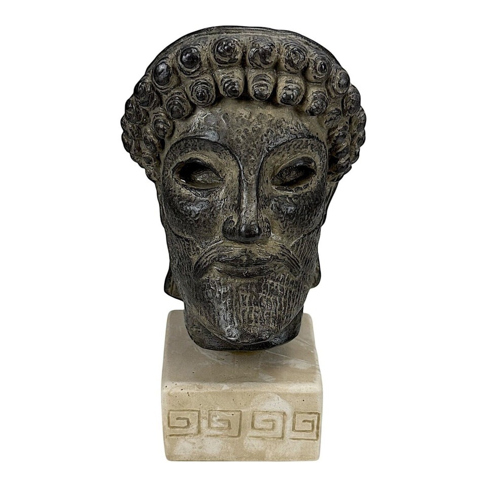Erhohen Sie Ihren Raum mit der Zeus-Büste Kopf von Olympia, inspiriert vom Bronzekopf einer Zeusstatuette aus seinem Heiligtum in Olympia aus den Jahren 520-510 v. Chr. Gefertigt aus hochwertigem Hartgips und misst 6,7 Zoll, fangt diese beeindruckende Skulptur die Majestat des griechischen Gottes Zeus ein und ist damit eine perfekte Erganzung für jede Sammlung oder Dekoration. Ideal für Kunstliebhaber und Liebhaber der antiken Mythologie.