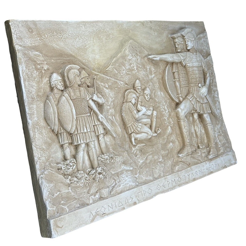 Flachrelief Spartaner Krieger Konig Leonidas Schlacht bei Thermopylen Steinguss Griechische Skulptur Wanddeko