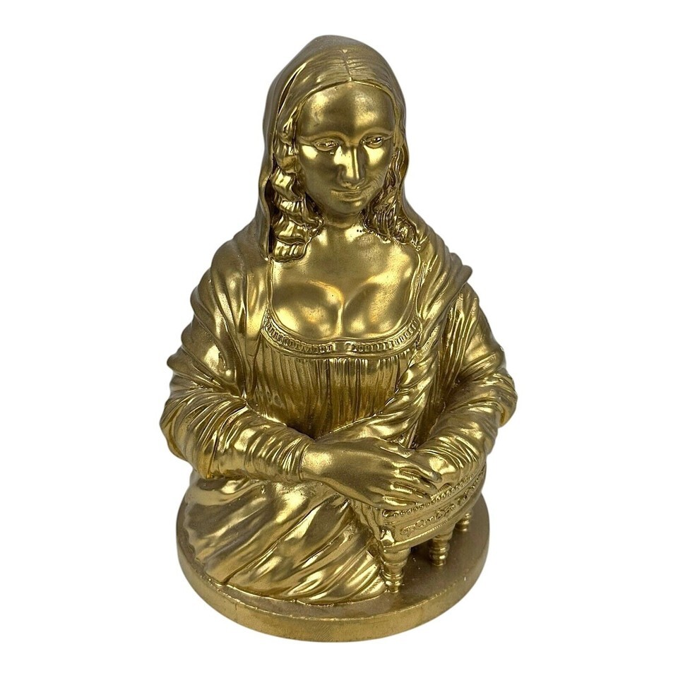 Mona Lisa Gioconda Leonardo da Vinci Louvre Museum Hard Plaster Gold Tone- sh...