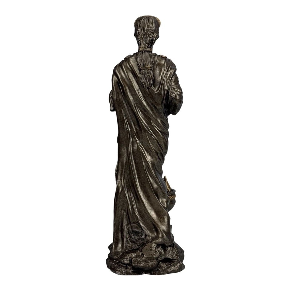 Dieses exquisite Hestia Vesta Statue stellt die verehrte griechische Gottin von Heimat, Familie und Herd dar. Mit einer Hohe von 7,08 Zoll zeigt diese fein gearbeitete Skulptur Hestia/Vesta in einer ruhigen und anmutigen Pose, die Warme, hausliche Harmonie und Schutz verkorpert. Die Statue ist wunderschon in einer satten Bronzefarbe gehalten und fangt die komplizierten Details ihrer fließenden Gewander und ihres ruhigen Auftretens ein. Ideal für Sammler, Liebhaber der griechischen Mythologie oder diejenigen, die ihr Zuhause mit einem Symbol für Familie und Ruhe aufwerten mochten, ist diese Statue eine perfekte Erganzung für jeden Raum. Eine zeitlose Hommage an eine der wichtigsten Gottheiten des antiken Griechenlands.