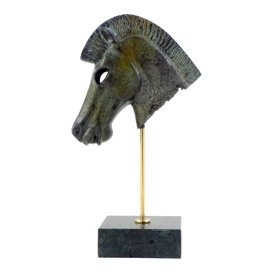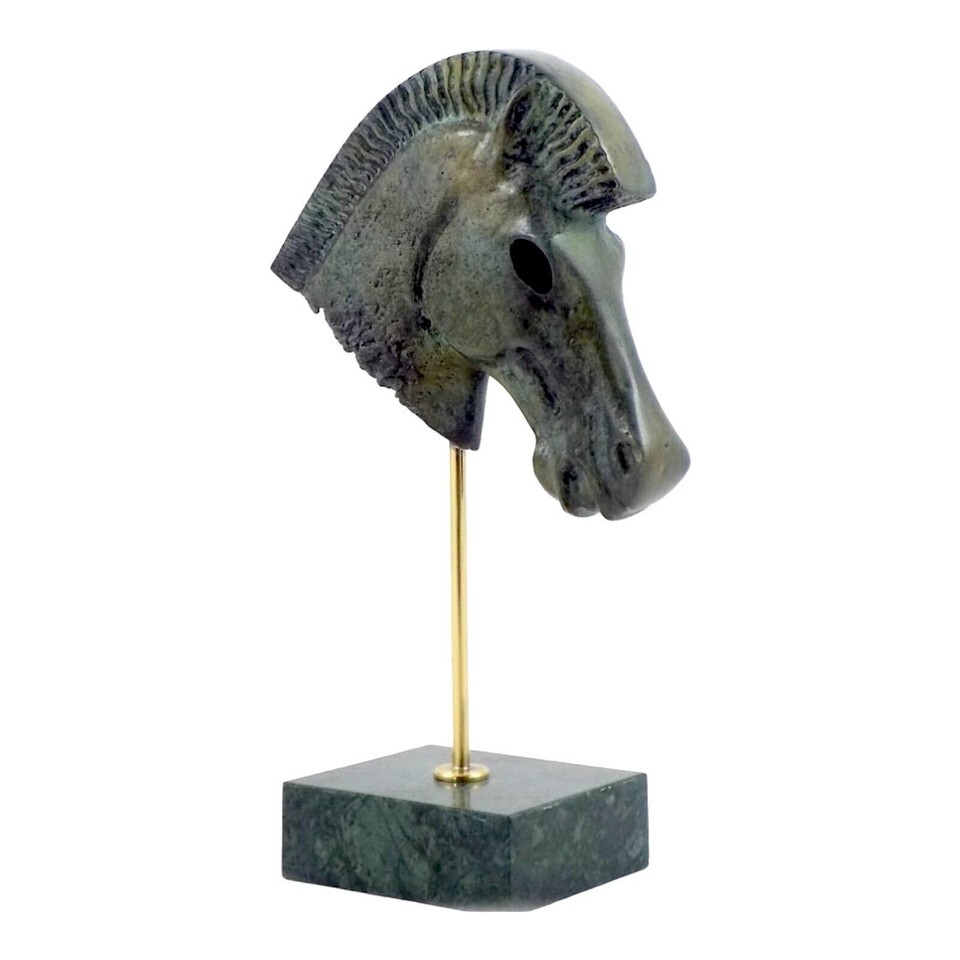 Horse Head Real Bronze Statue Sculpture on Greek Natural Marble Base- show or...