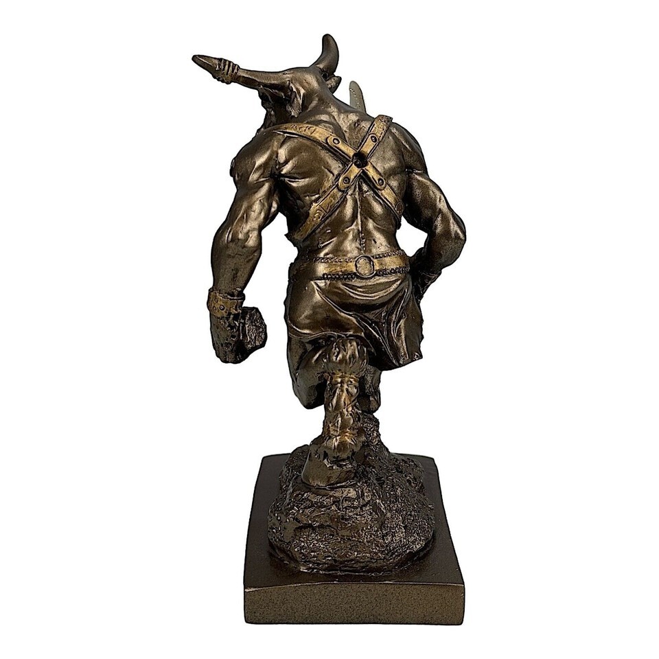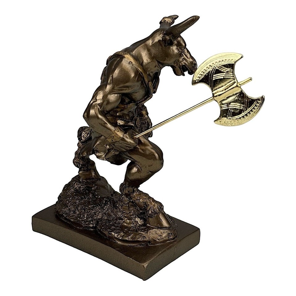 Minotaur with Double Axe Greek Monster Bronze Tone Statue Sculpture...- show ...