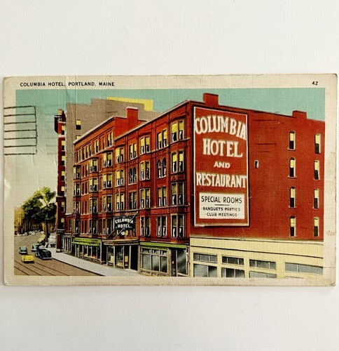 Columbia Hotel Portland Maine MISPRINT ERROR Postcard Downtown 1930s-40 DWS5B