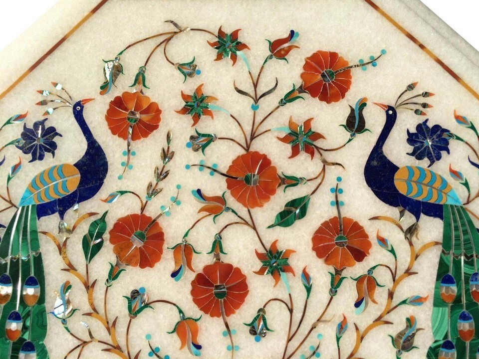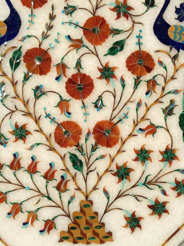 Most interesting expect of this pietre dure( marble inlay with hard stone) all the designs are made by the artisans are purely an imagination of artist once made they cannot make another one exactly the same it will look similar but will not be the same.