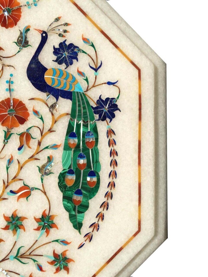 12" White Italian Marble Top Coffee Table Peacock Arts Side Pietra Dura Inlaid