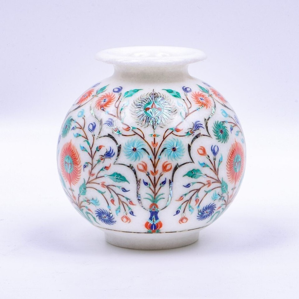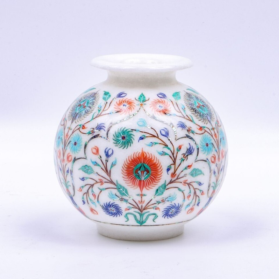12" White Marble Flower Inlay Vase Lapis and 45 similar items