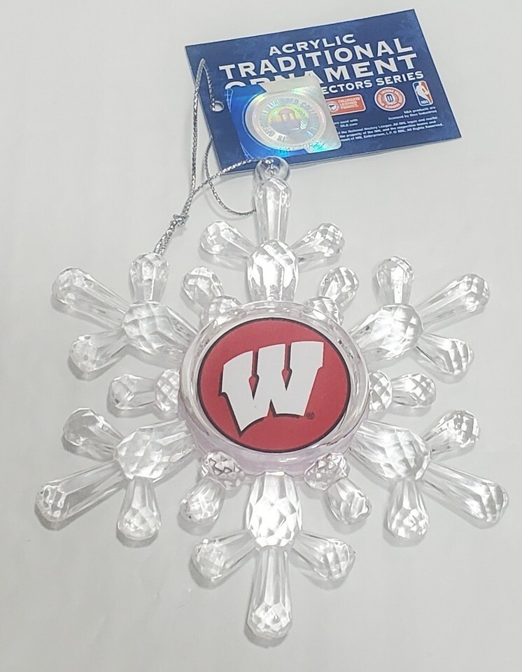 Officially Licensed Wisconsin Badgers Acrylic Snowflake Ornament.