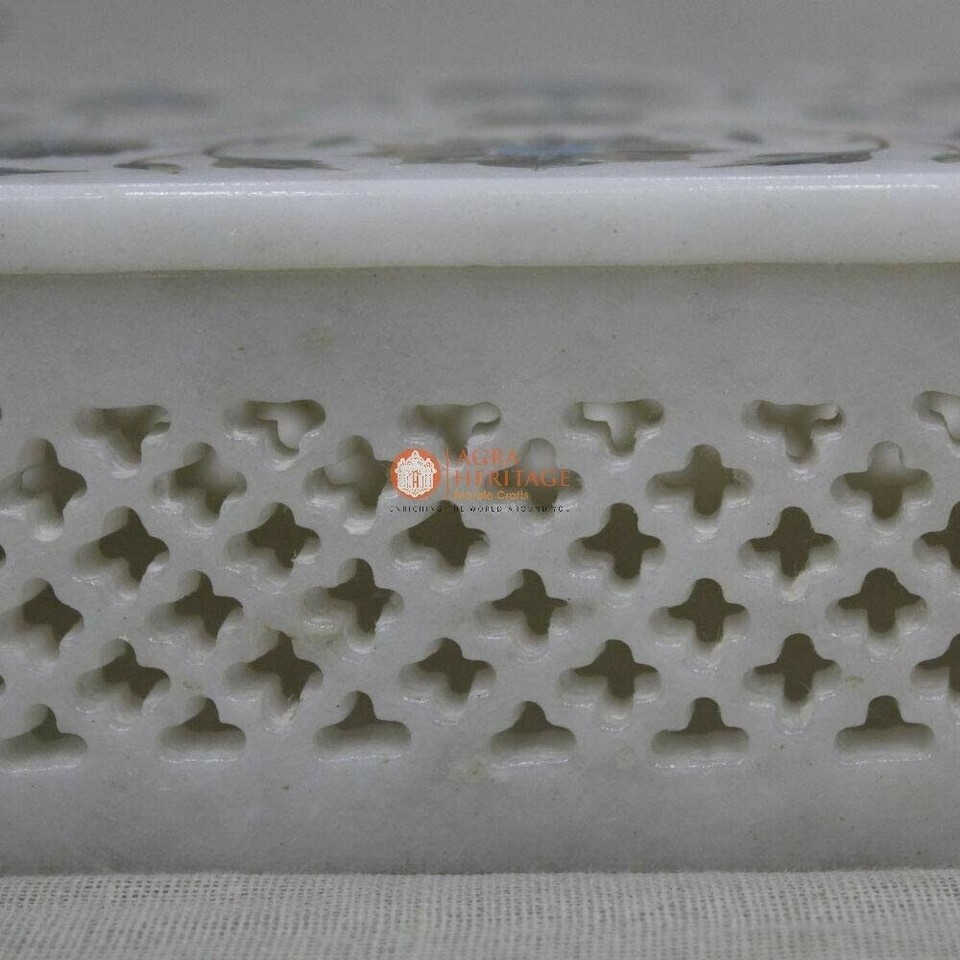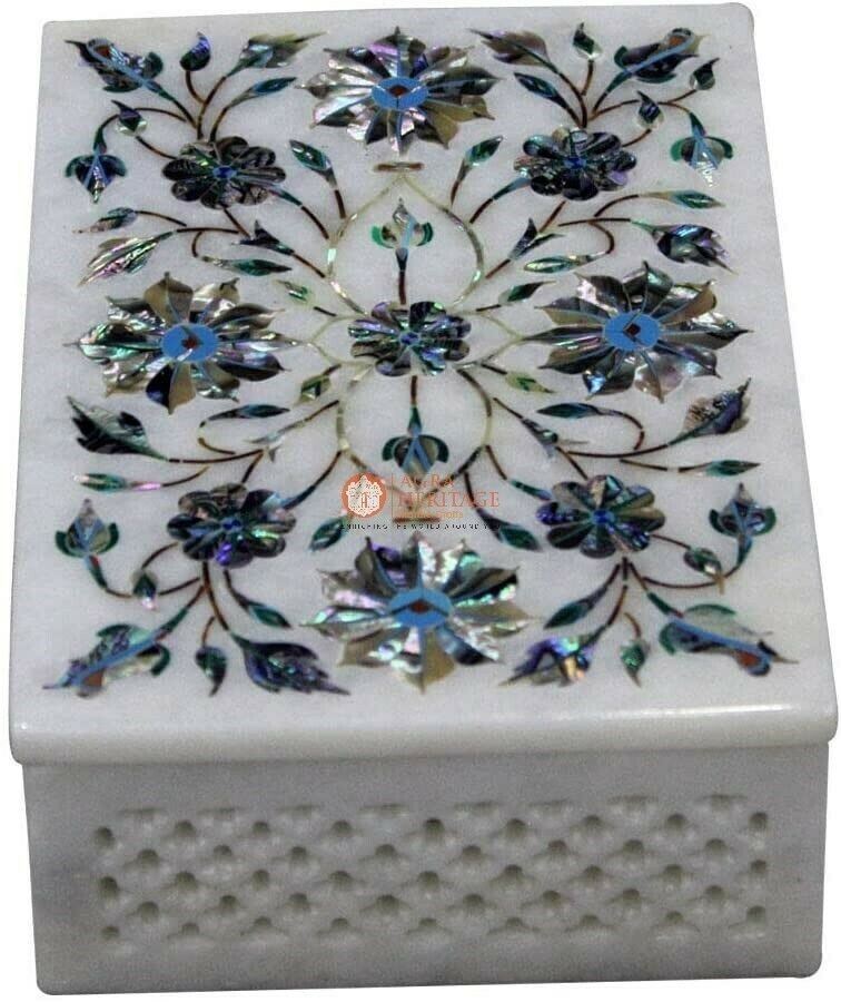 Filigree Design Marble Handicraft Jewelry Box Pauashell Precious Inlay Art E2011