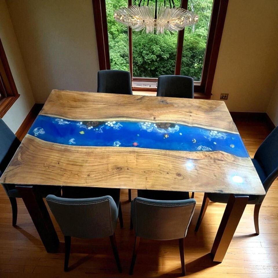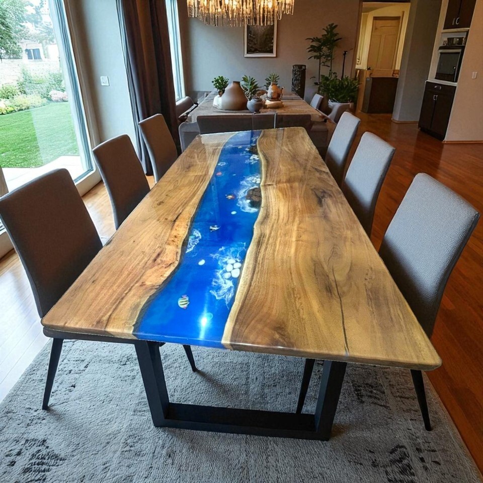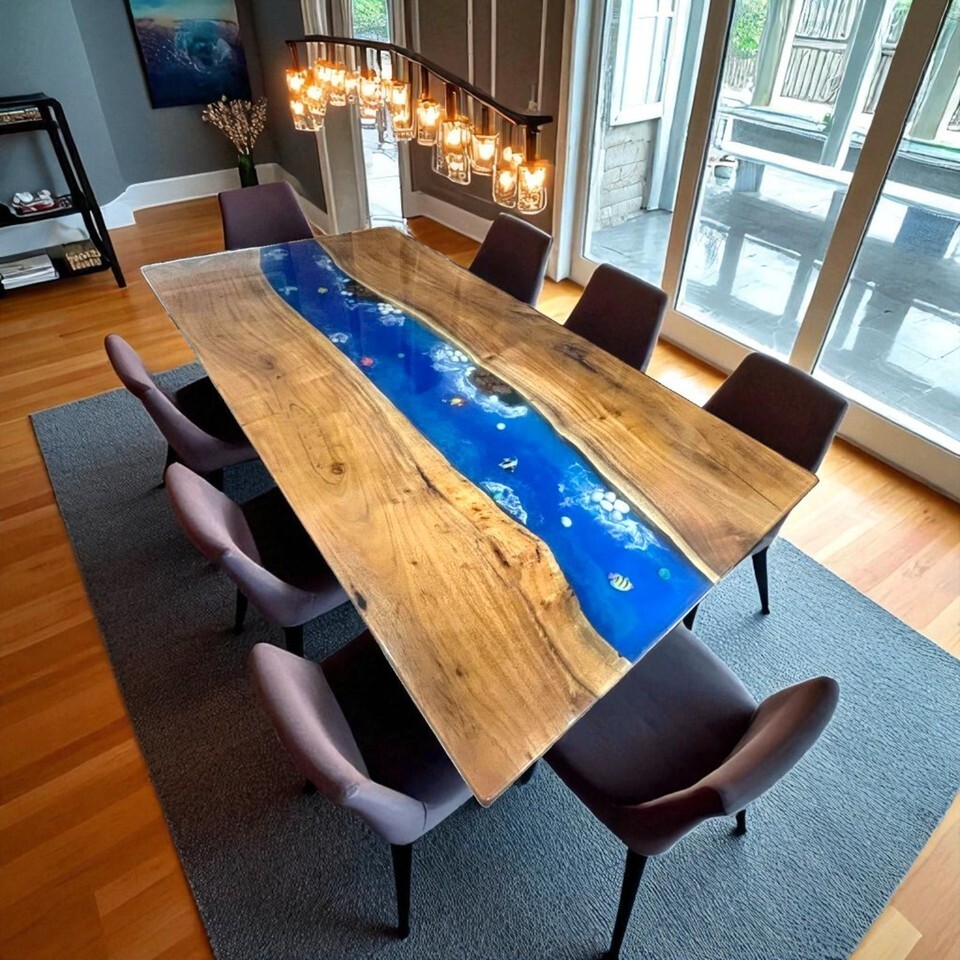 Blue Epoxy Ocean Wave Dining Table Sofa and similar items