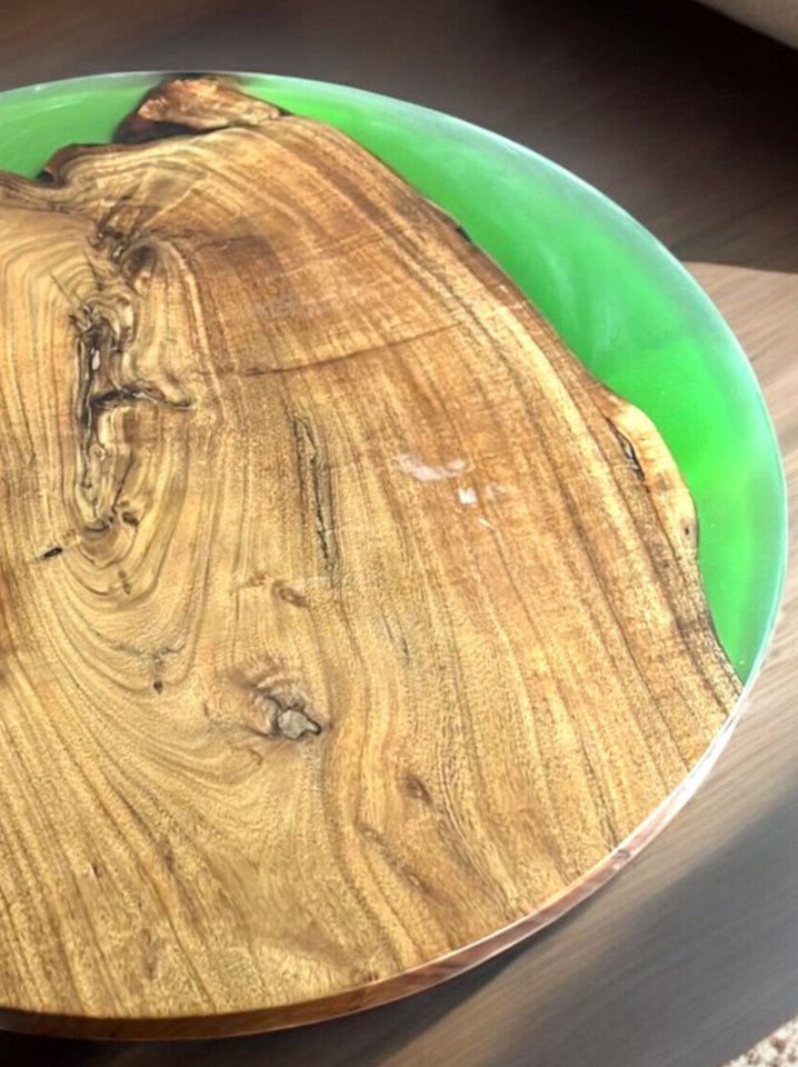 24" Round Green Epoxy Resin Coffee & End Table Top Modern Luxury Bar Hallway Top