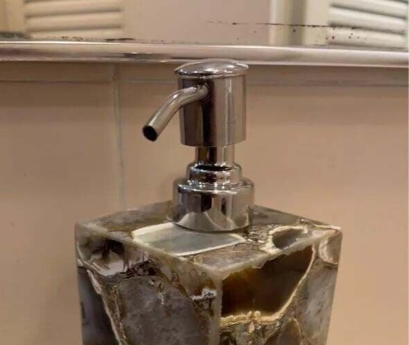 Natural Agate Soap Dispenser Vanity Top Bathroom Decorative Golden Pump Handmade