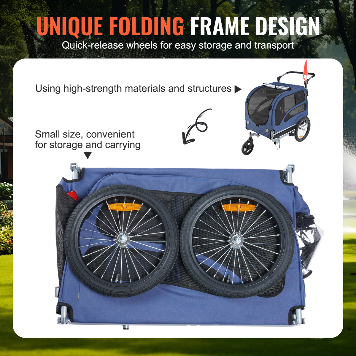 VEVOR Dog Bike Trailer, Supports up to 100lbs, 2-in-1 Pet Stroller, Blue/Black