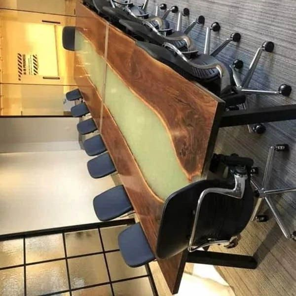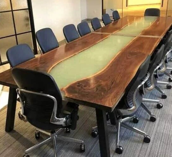 Our epoxy tables are custom-made, and we strive to use the same type of wood as depicted in our advertising pictures. However, it is not always possible to find an exact match, which may result in slight variations in the epoxy color and wood grain pattern.