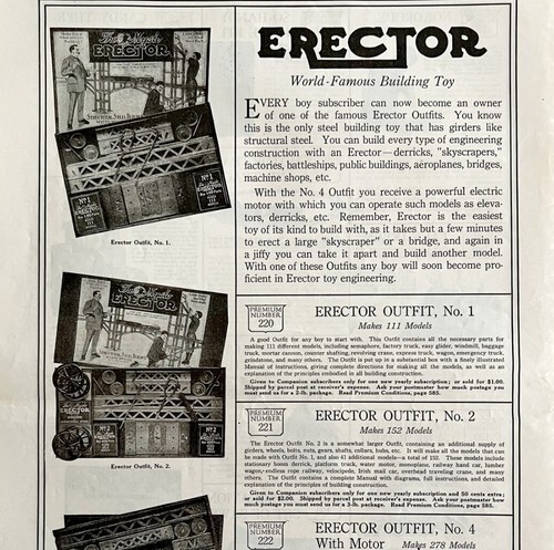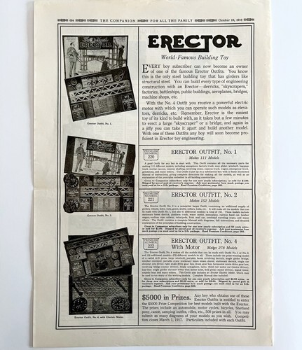 1916 Erector Set Toy Advertisement Full Page and similar items