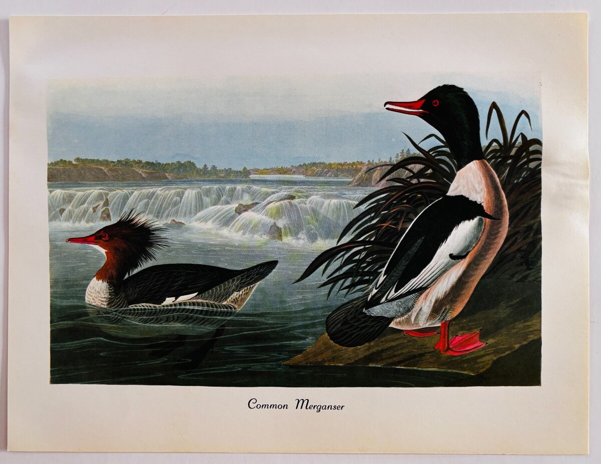 1979 Common Merganser Color Plate Print Audubon Birds Of America Vintage F15K