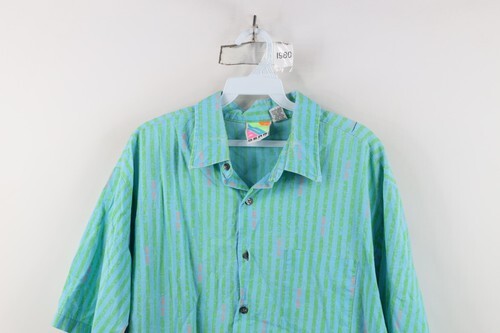 Vtg 80s 90s Surf Gear Mens XL Distressed Baggy Striped Surfing Button Shirt USA
