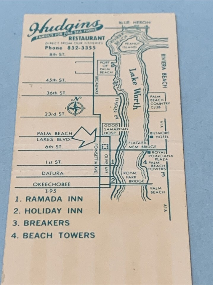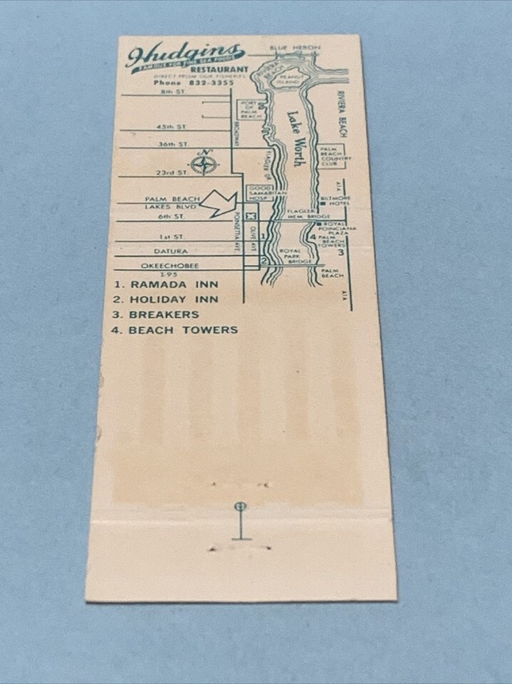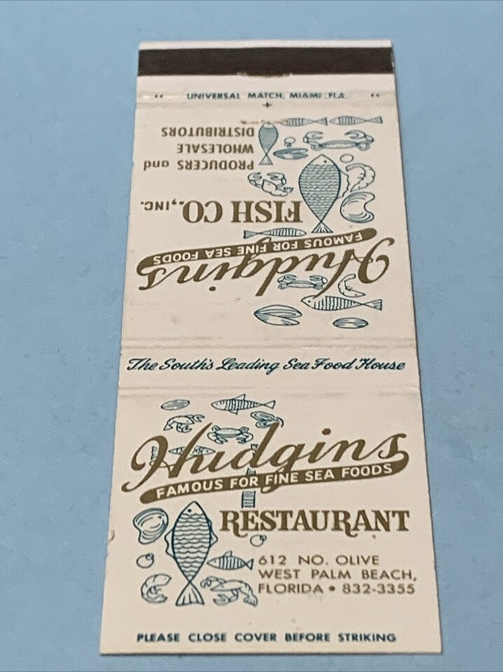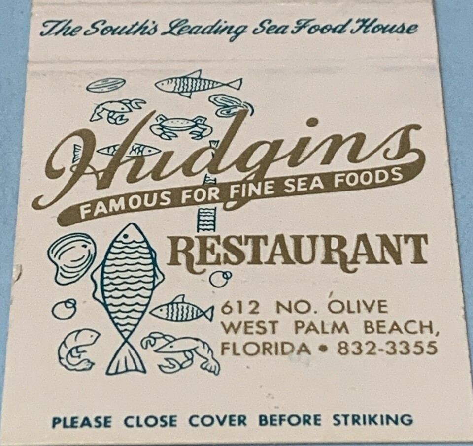 Front Strike Matchbook Cover Hudgins Restaurant West Palm Beach,Florida gmg