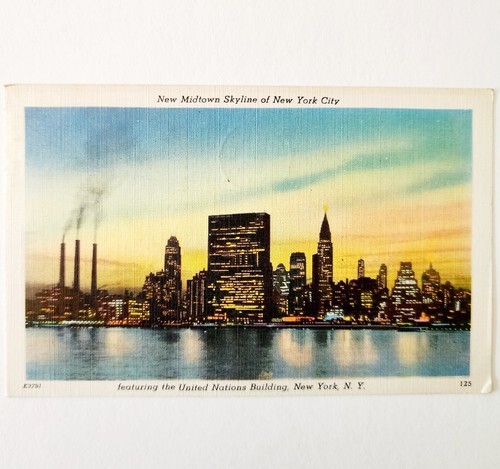 NYC Midtown Skyline Postcard United Nations Building New York c1930s DWS5D