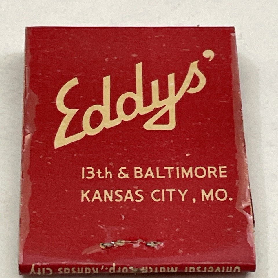 Front Strike Matchbook Cover Eddy’s Restaurant-Lounge Kansas City, MO gmg