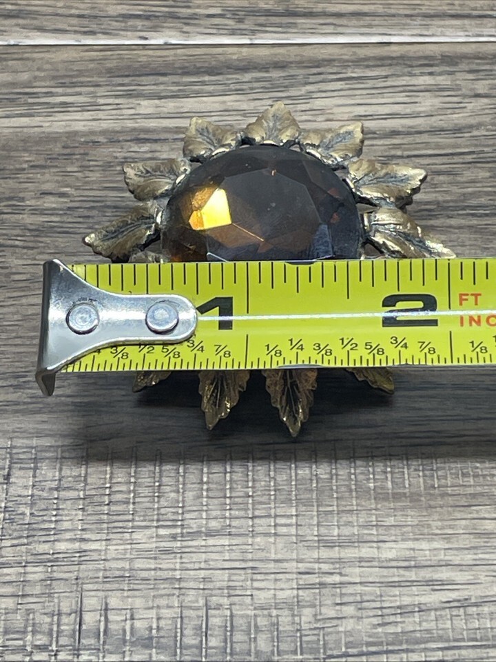 Vintage Emmons Amber Colored Honey Glass Pin Brooch Sunburst Sunflower KG JD
