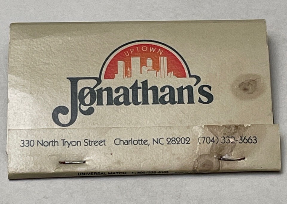 Vintage Matchbook Jonathan’s Charlotte, and similar items