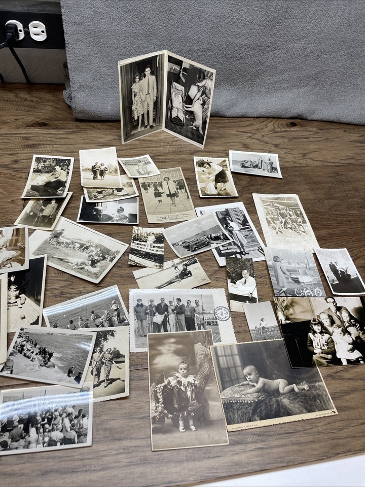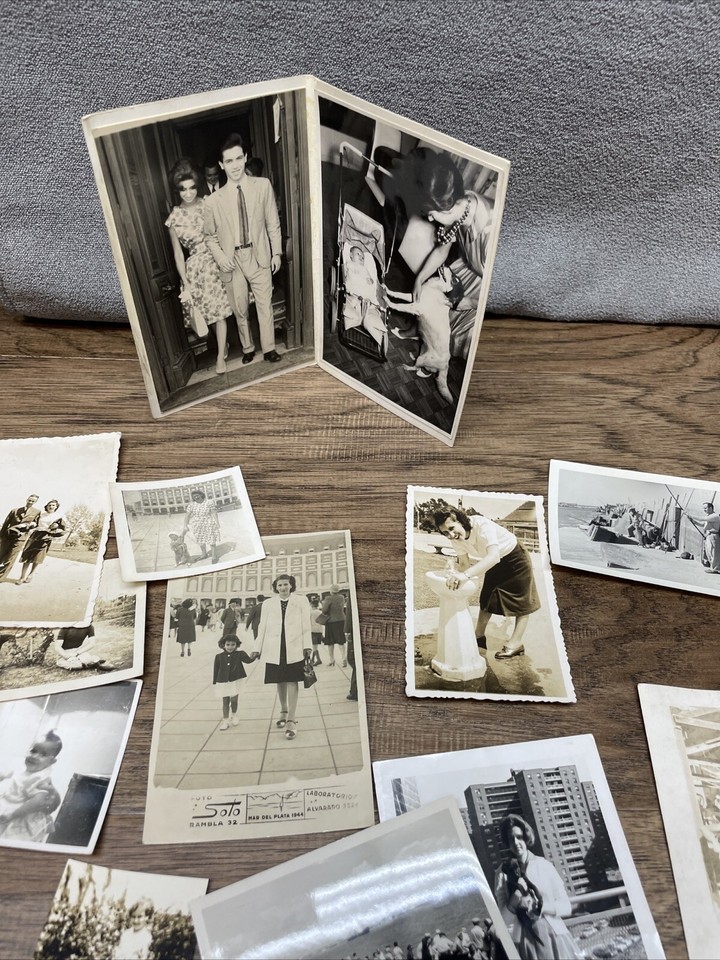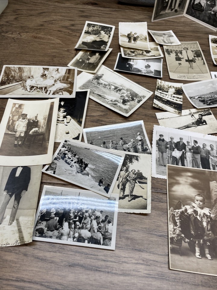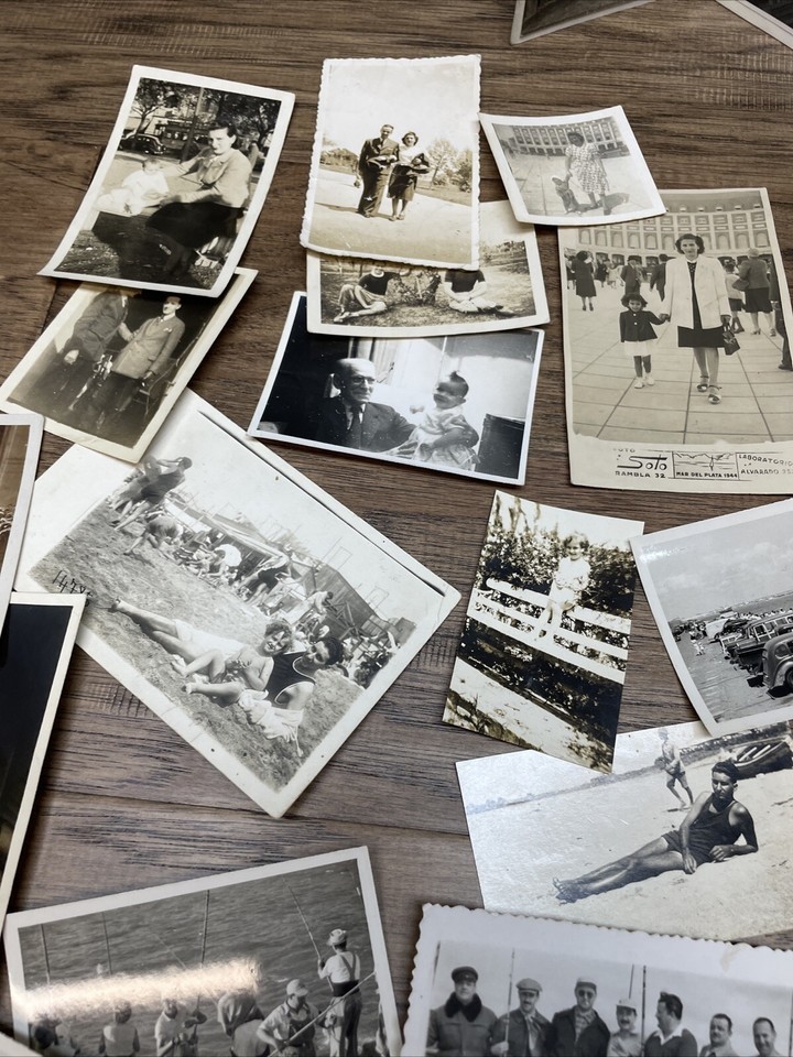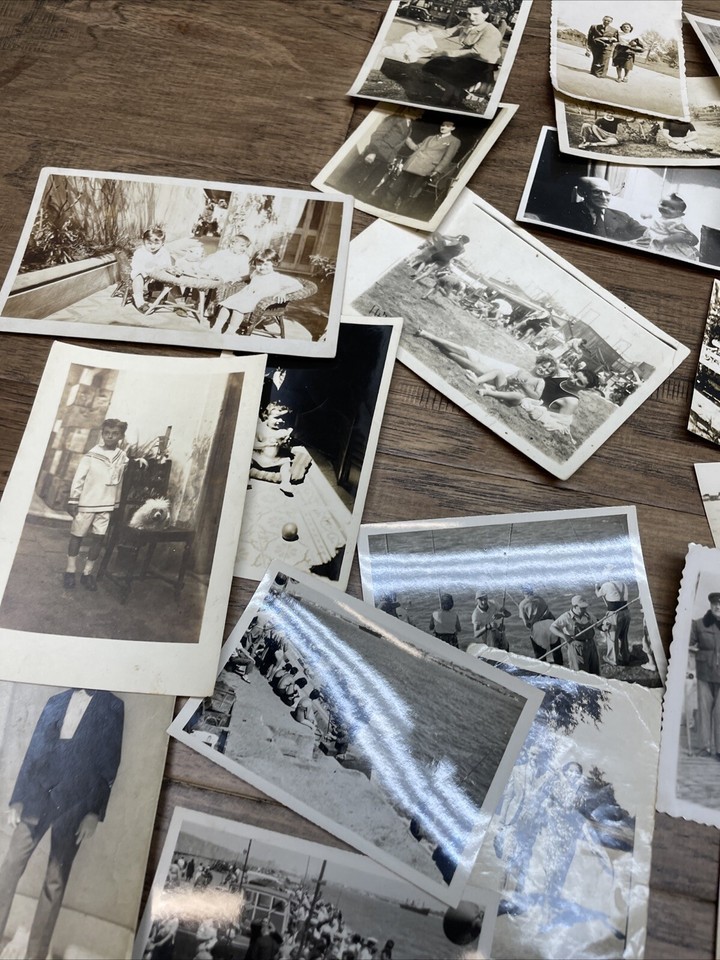 Paper is yellowing. A few have a name written on them. Depicts beaches and parks. Some at home pictures. Cookouts and picnics. Please see pictures for condition details and measurements.