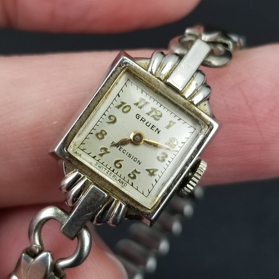 Vintage Gruen watch Ladies Wrist 1950s 10k WHITE GOLD filled Precision hand wind