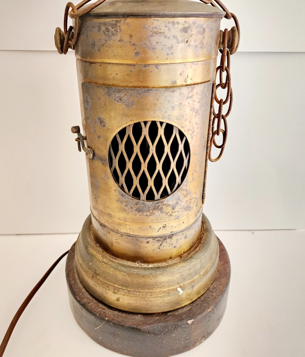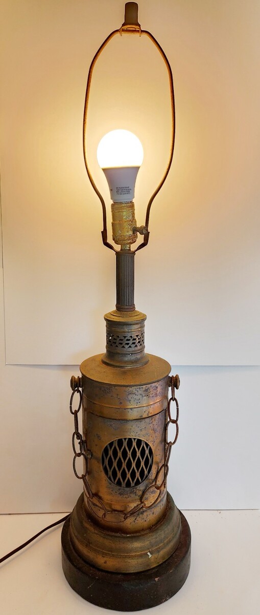 1960s MCM Table Lamp Brass Nautical Industrial Internal Light Mid Century INVRM