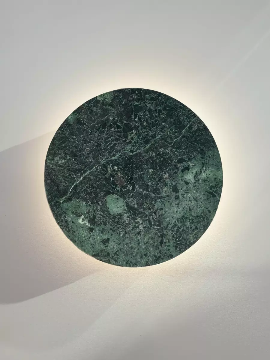 MarmorOrbis Verde | designer green marble wall sconce with back lighting