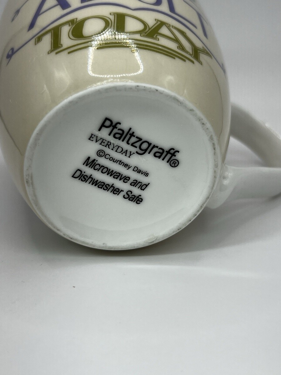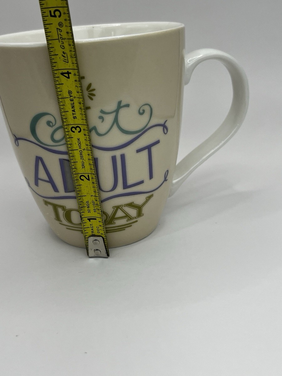 Enjoy a laugh with your morning brew using this 18 oz ceramic mug from Pfaltzgraff Everyday. Features the bold and humorous phrase ?I Can?t Adult Today? in colorful, playful lettering. Cream-colored with a large easy-grip handle. Microwave and dishwasher safe. Great for coffee, tea, or as a fun gift! Preowned in good condition?Please see photos for details.