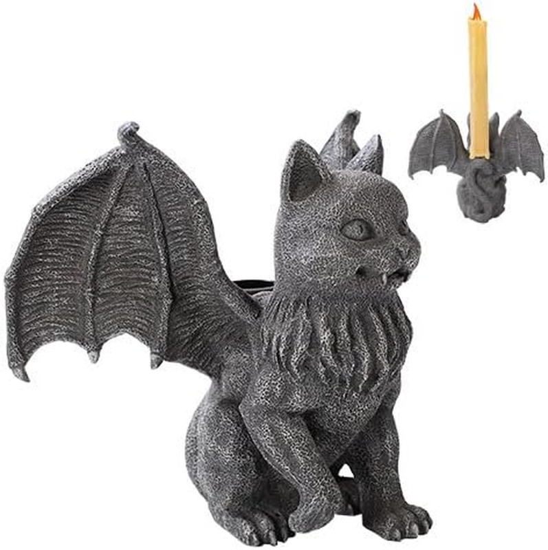 Vampire Dracula Fanged Cat Gargoyle Gothic Candleholder Figurine Sculpture Deco