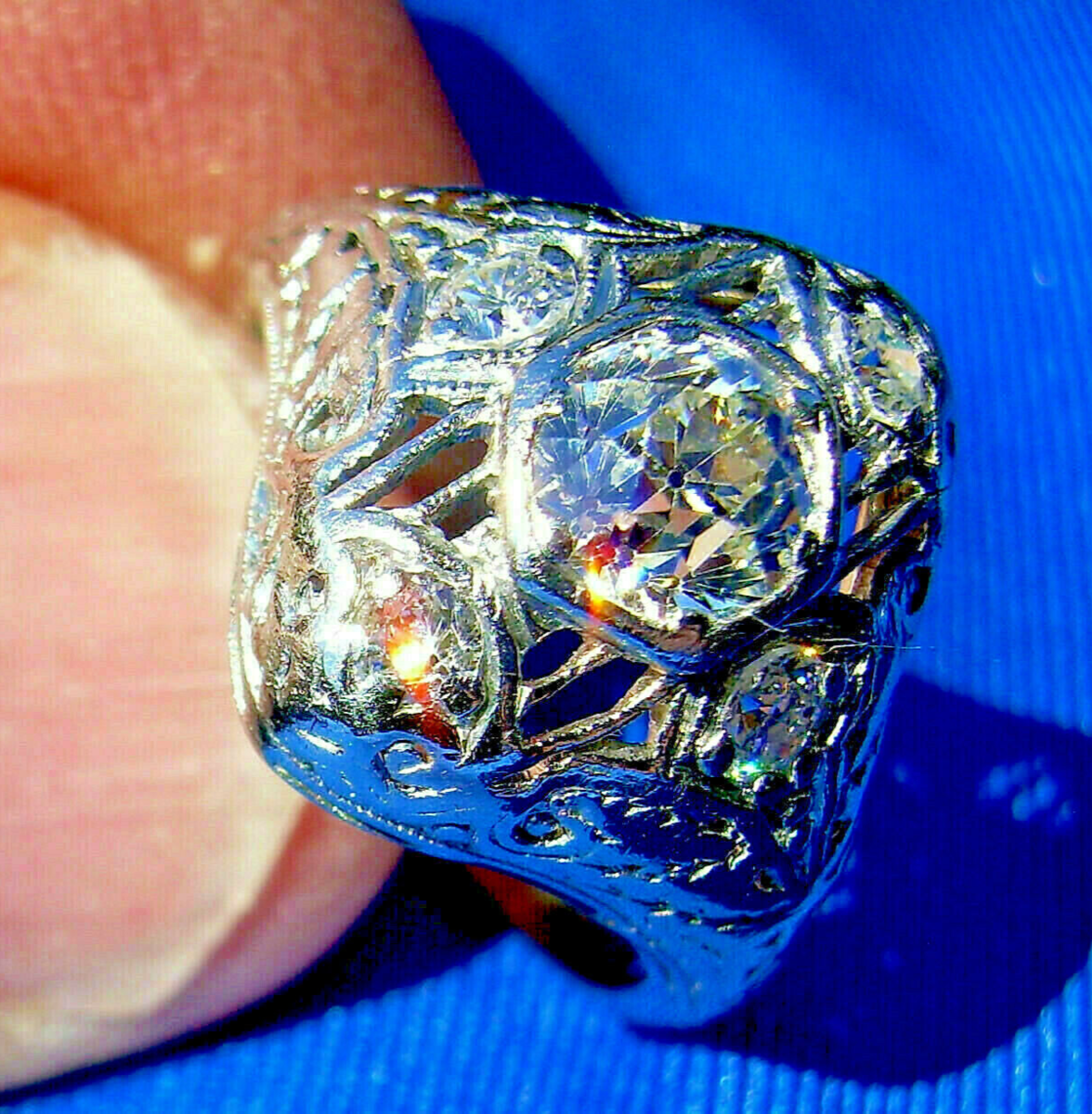 Earth mined Diamond Deco Engagement Ring 1 CT Antique Vintage Platinum Solitaire