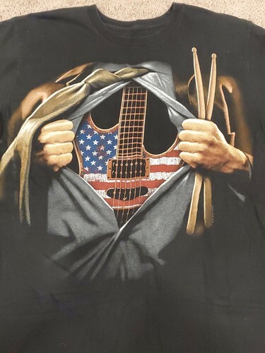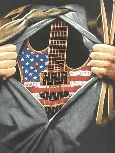 Country Music/American Guitar Superhero Black T-Shirt, Adult Medium, Black