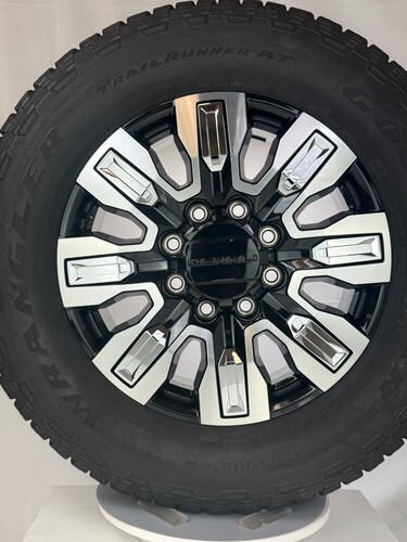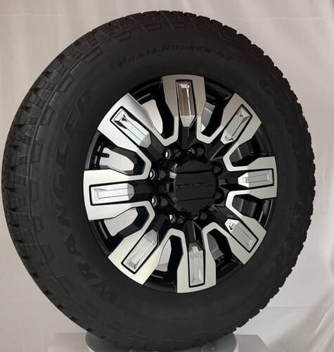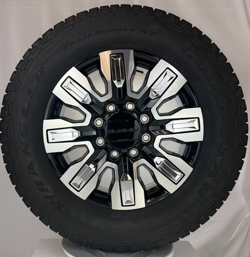 Set of 4 New Takeoff GMC Sierra 2500 20" Ultra Bright Black Machined With Bright Chrome Insert Wheels With Goodyear Wrangler TrailRunner A/T LT275/65R20 Tires
