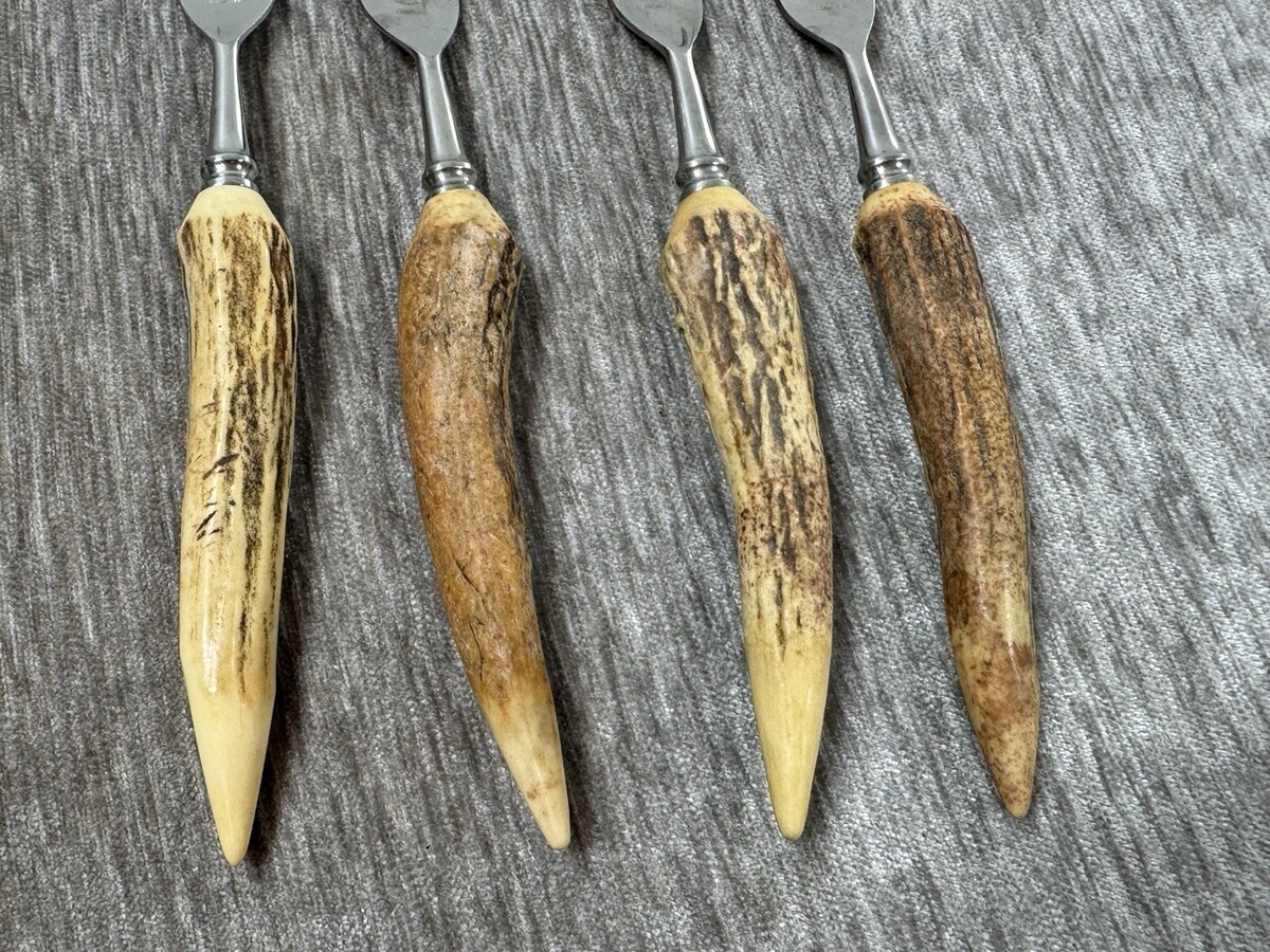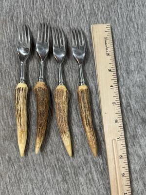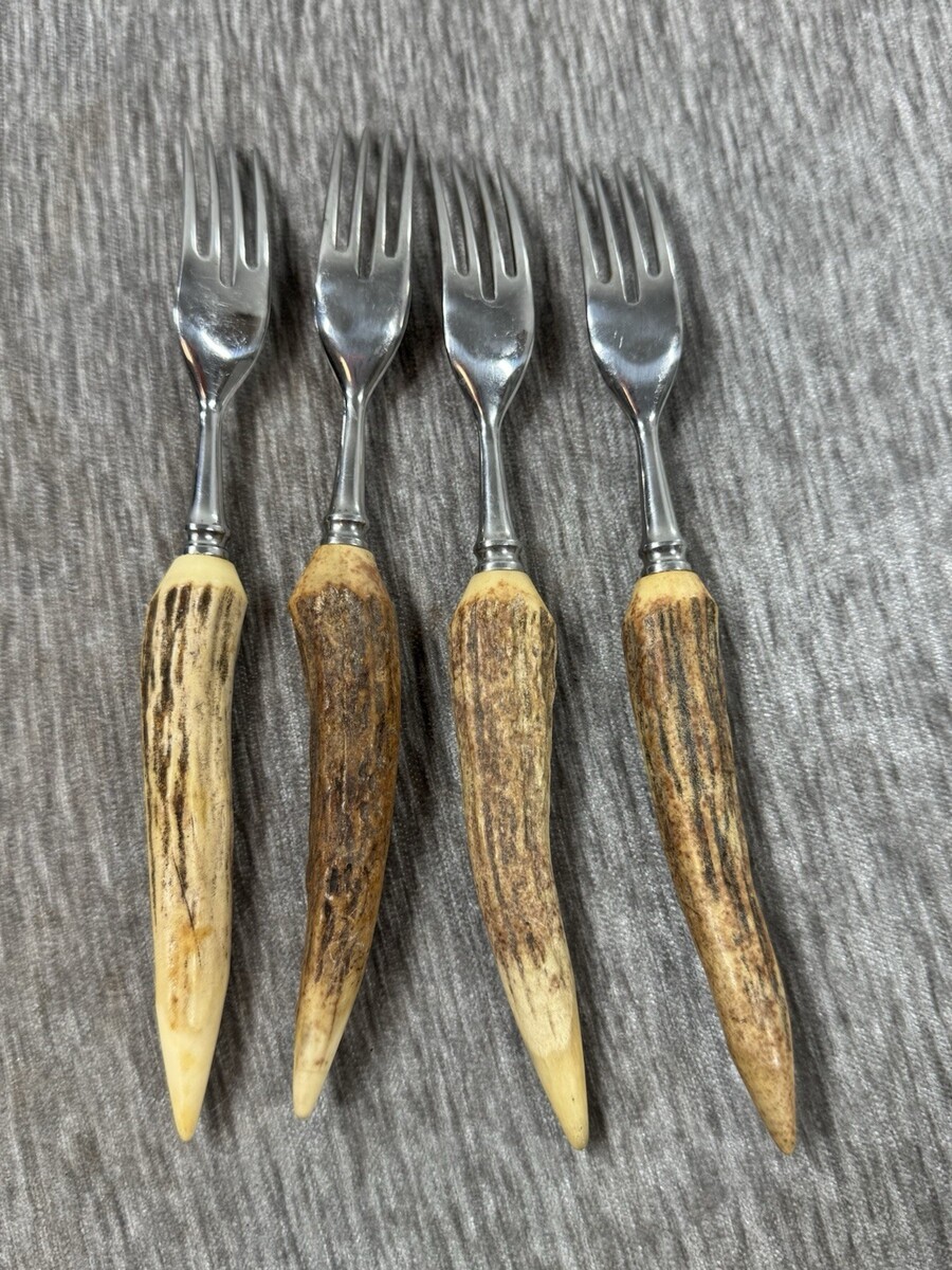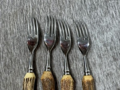 For sale is a Vintage Anton Wingen Jr Solingen Germany 4 Piece Fork Set with Stag Antler Handles