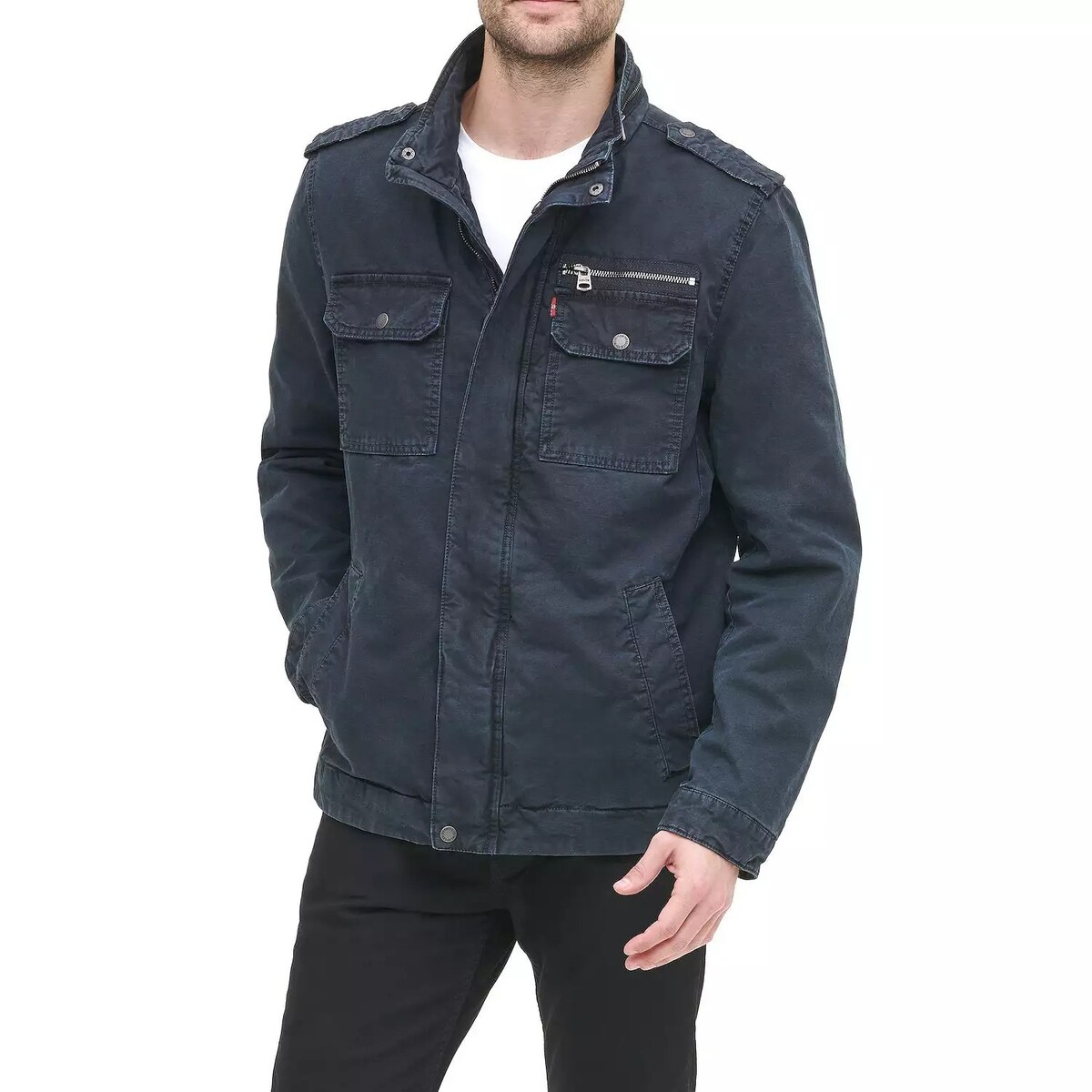 Stay sharp and ready for anything in the levi's men's unfilled cotton military jacket. Featuring a stand collar, vented hemline, and wind-resistant design, this jacket combines rugged durability with a sleek look. With dual zipper and snap closures, multiple pockets, and an interior slip pocket, it offers both style and functionality for any adventure.