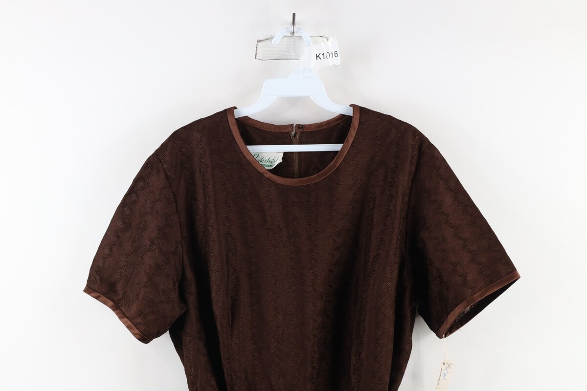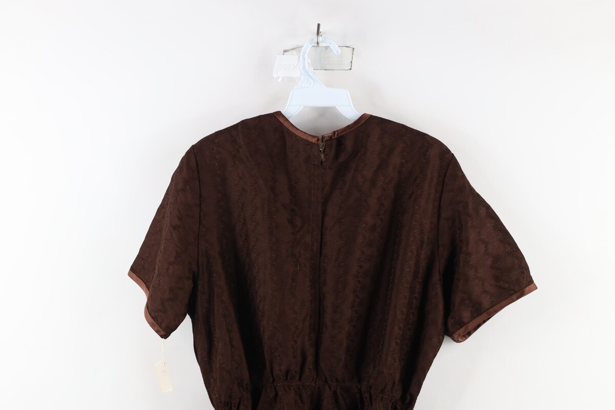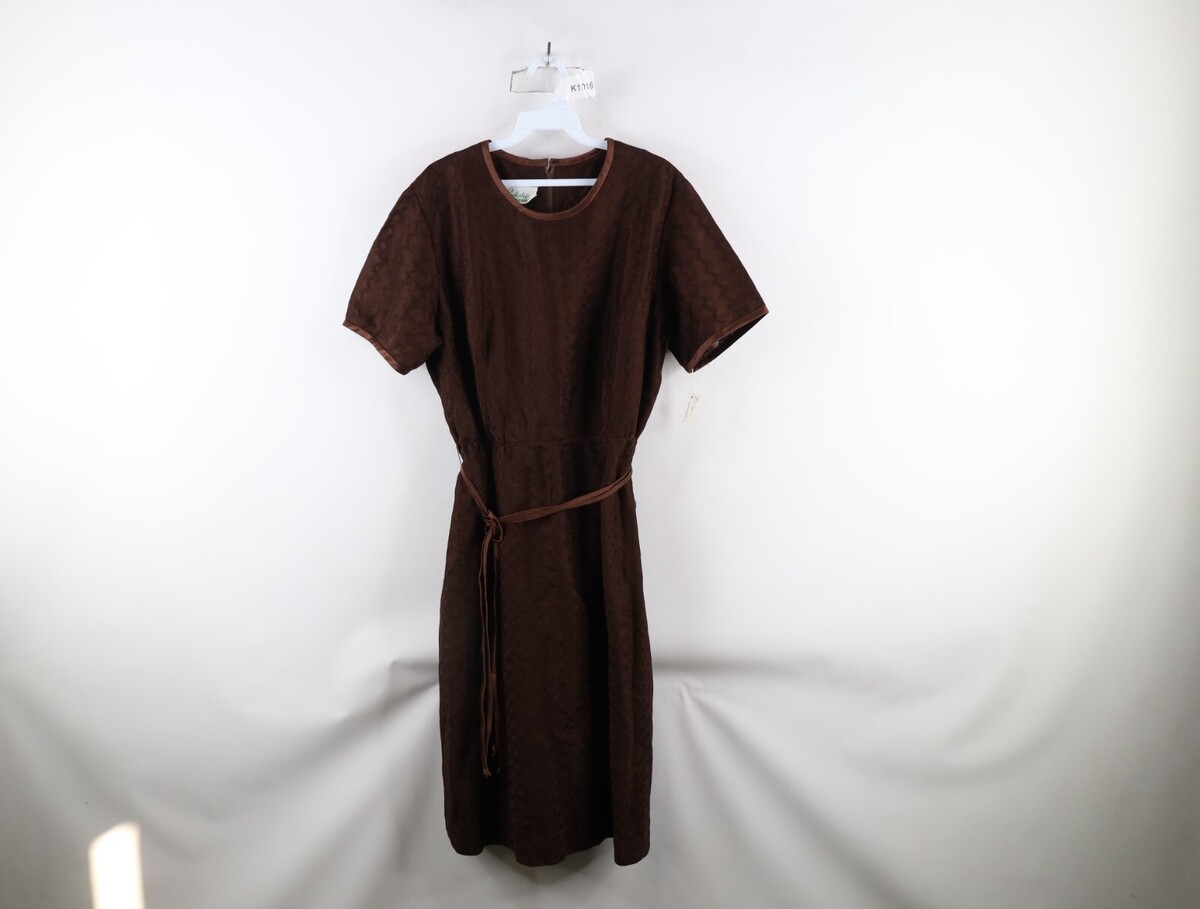 Deadstock Vtg 60s Mid Century Modern MCM Womens L Satin Trim Textured Knit Dress