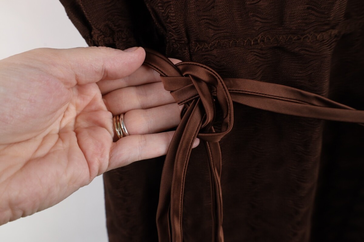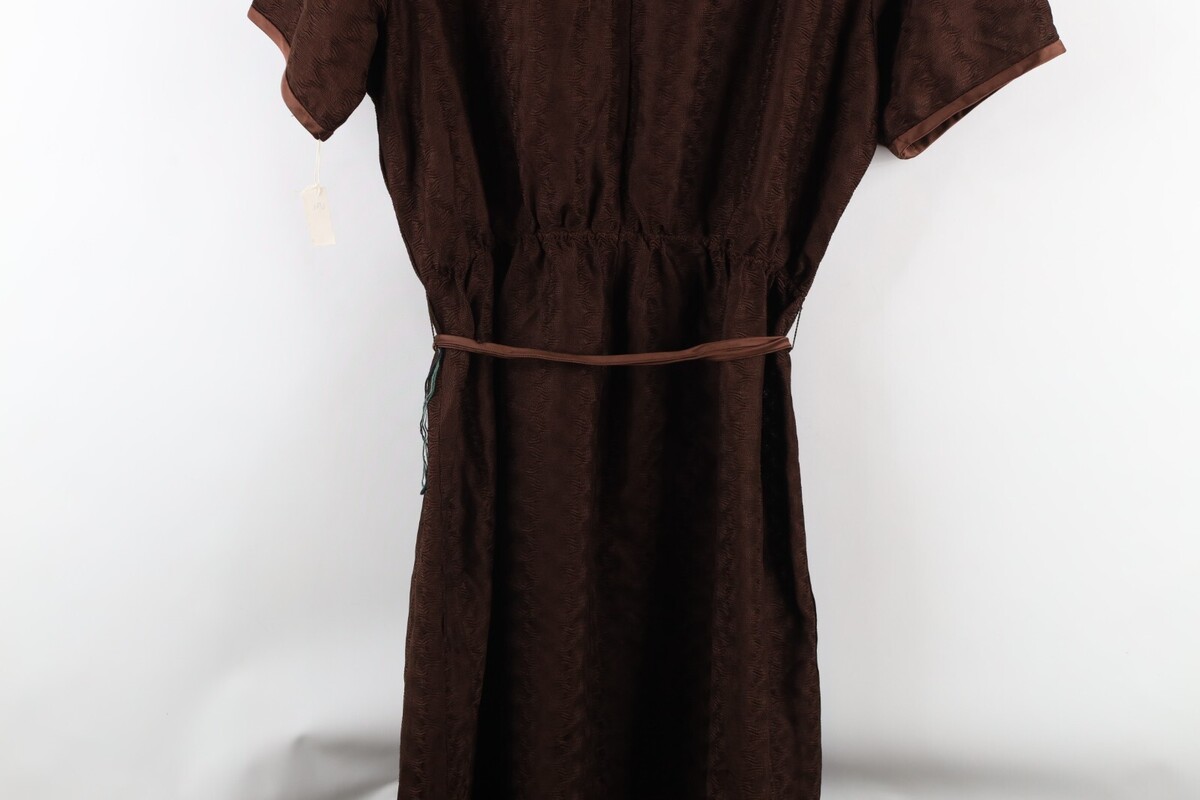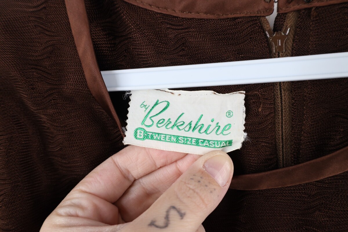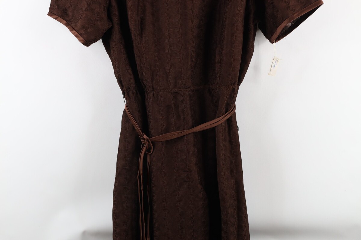 Deadstock Vtg 60s Mid Century Modern MCM Womens L Satin Trim Textured Knit Dress