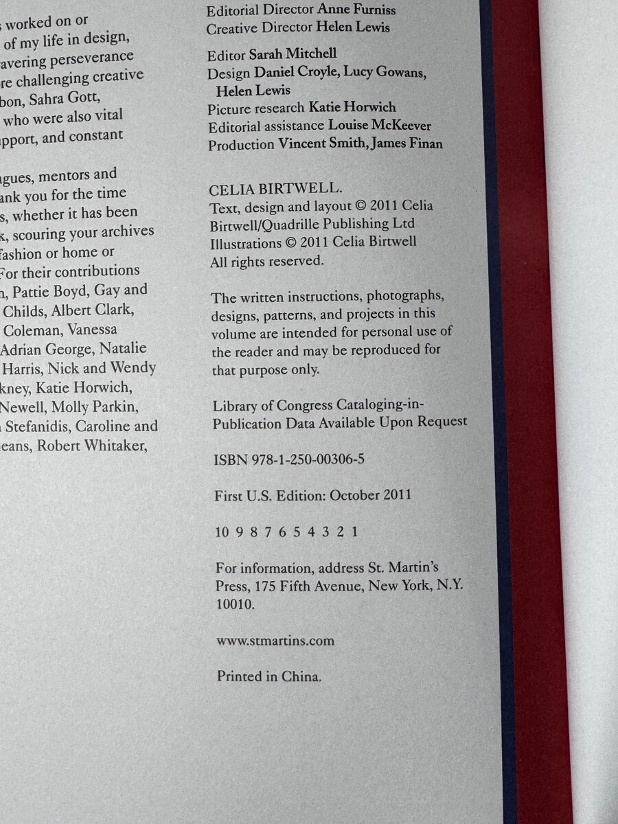 Celia Birtwell by Dominic Lutyens and Celia Birtwell 2011, HC 9781250003065