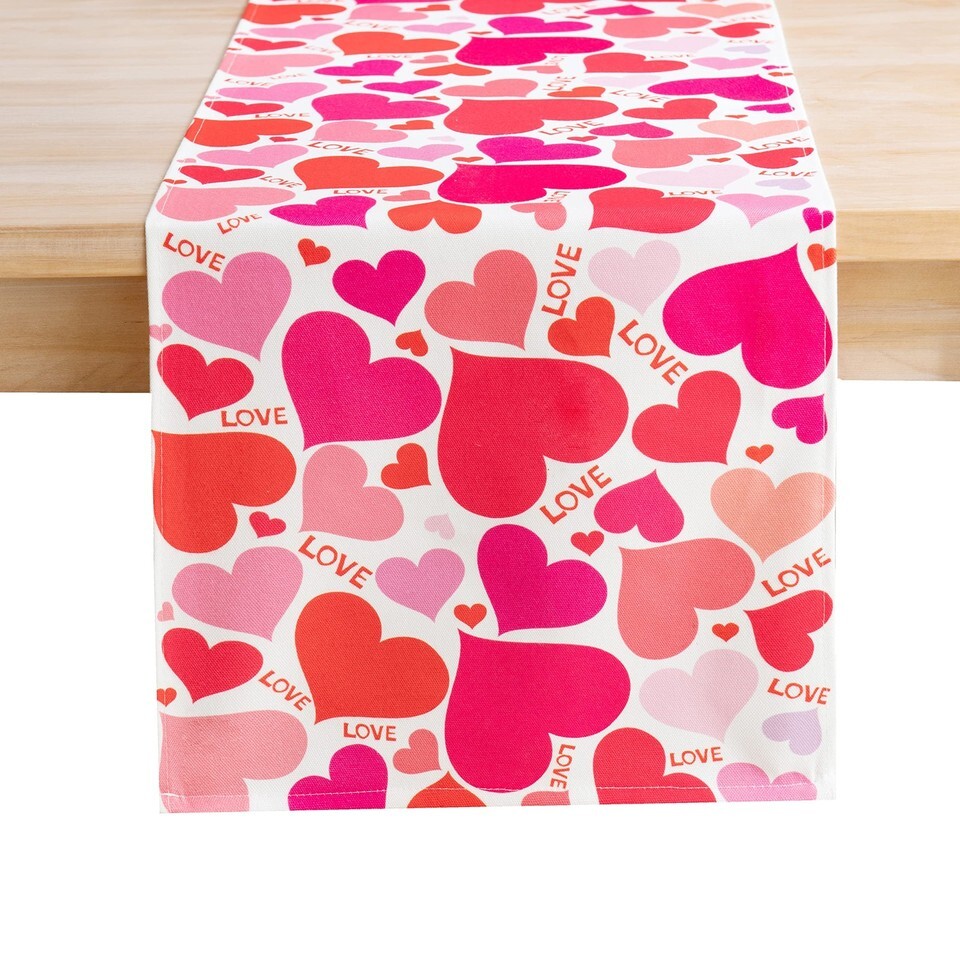Joyfol Day Valentine's Red Love Heart Table Runner 13x72 Inches