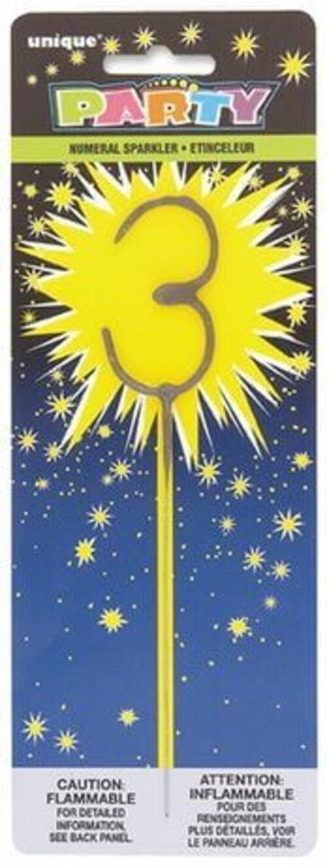 Make your celebration extra special with our Silver Sparkler Number 3 Candle! Whether you're throwing a milestone birthday party or an anniversary party, this number sparkler candle makes a fun way to get the party started. To use, take this number 3 sparkler outside, and hold it by the metal handle or pop it into your birthday cake. Ignite the spark with a lighter, and watch as it sparkles until it goes out! Find plenty of ways to make your party shine by shopping the rest of our silver party supplies.
