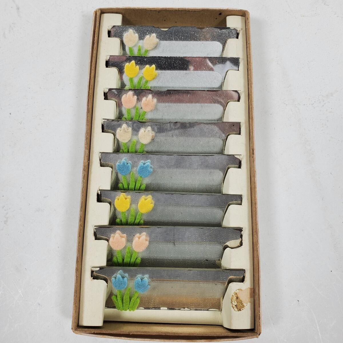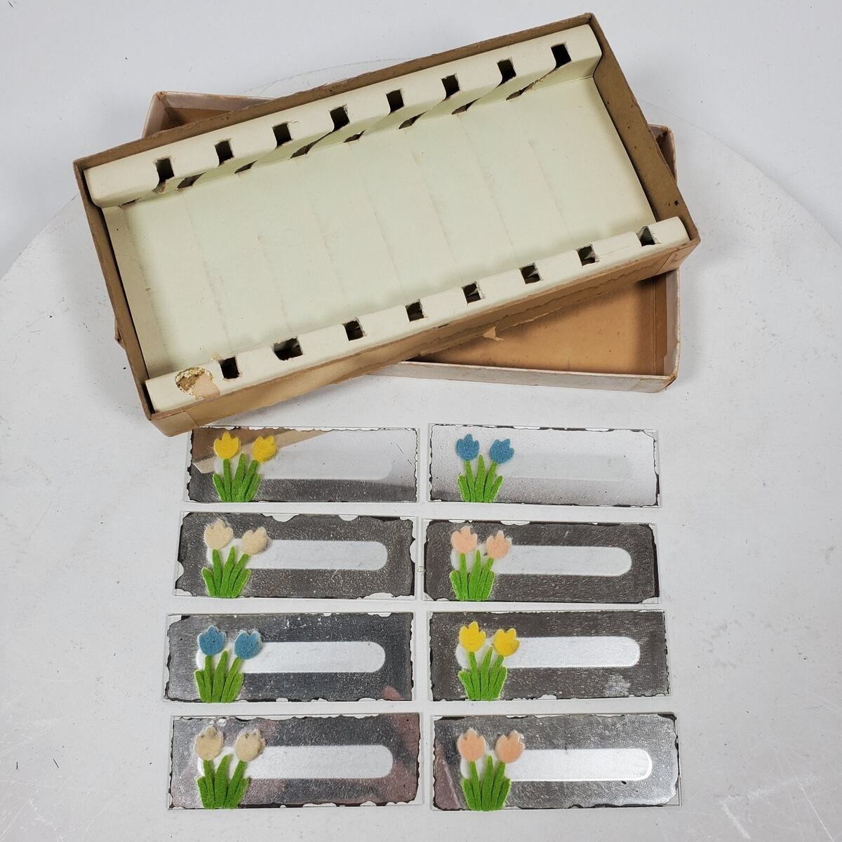 Vintage 1950 Eight Glass Place Cards Floral Party Vintage in Box