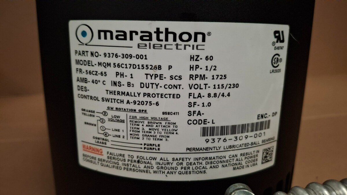 Dexter Dryer Motor- Mara Dl2X30. P/N: 9376-309-001 [USED]