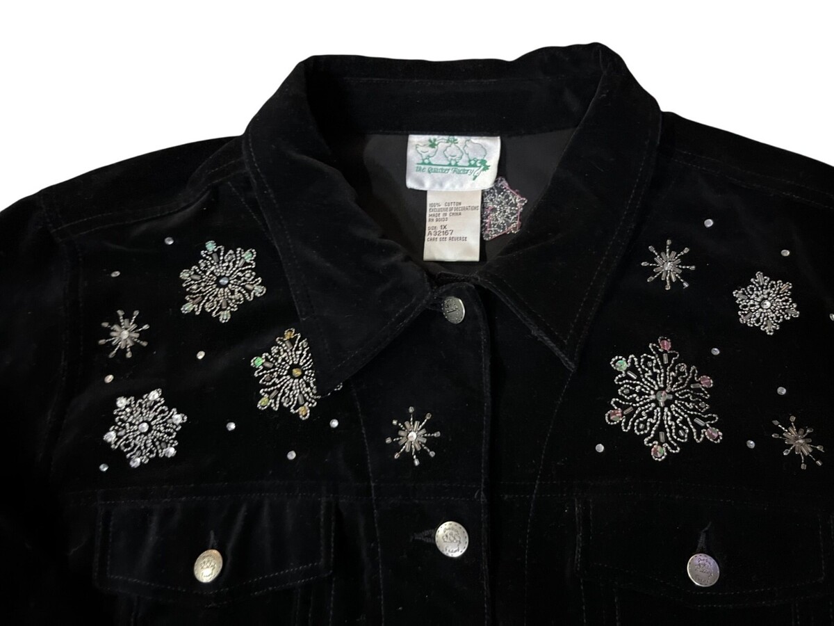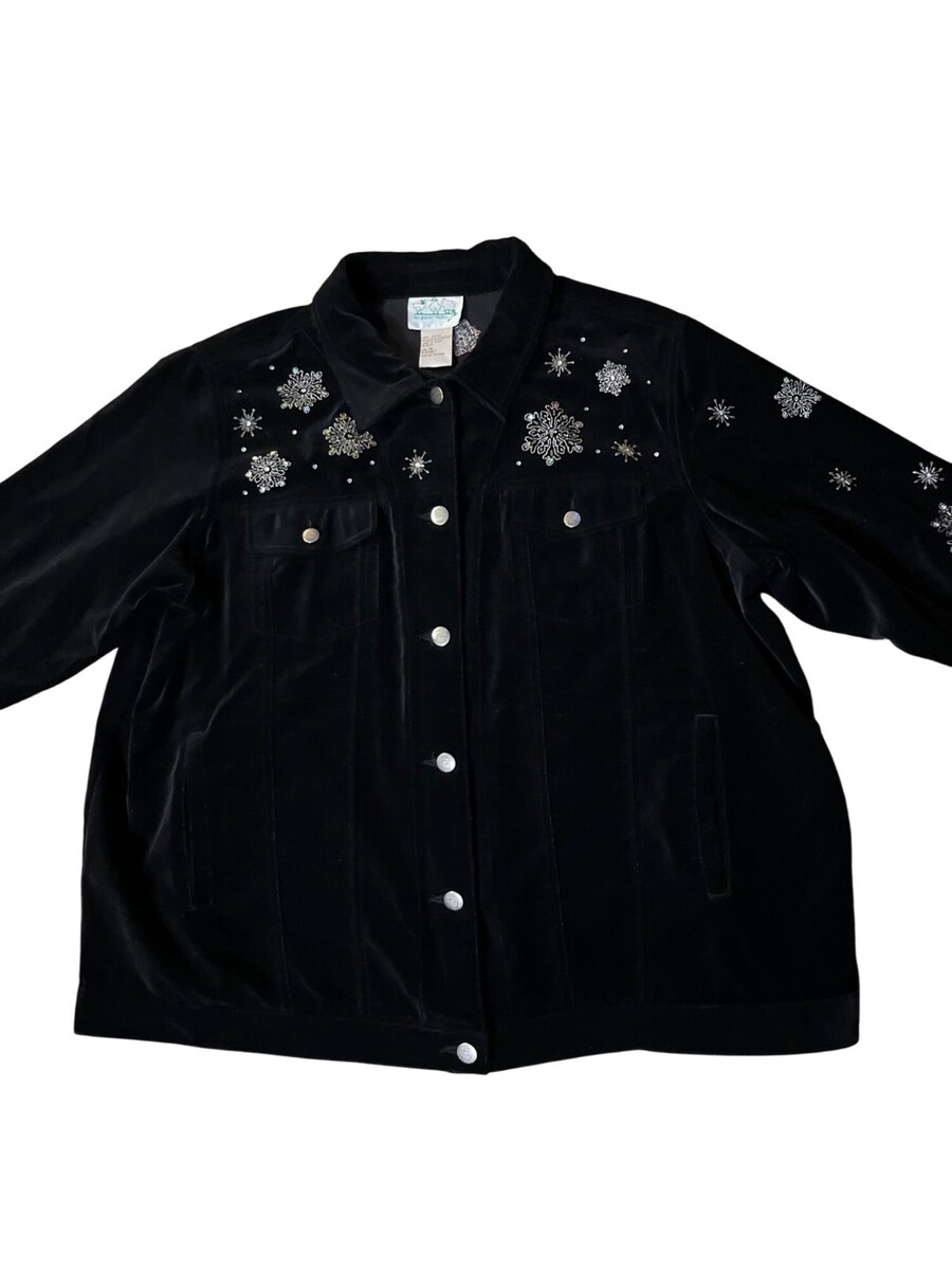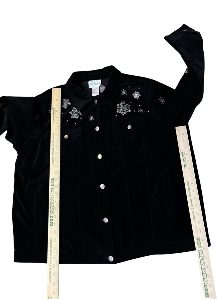 Quacker Factory, Holiday Jacket, Christmas, Snowman, Snowflakes, Embellished, Rhinestone, Festive, Jean Jacket Style, Velvet Feel, Women?s 1X, Winter, Capture the Magic, Holiday Party, Used