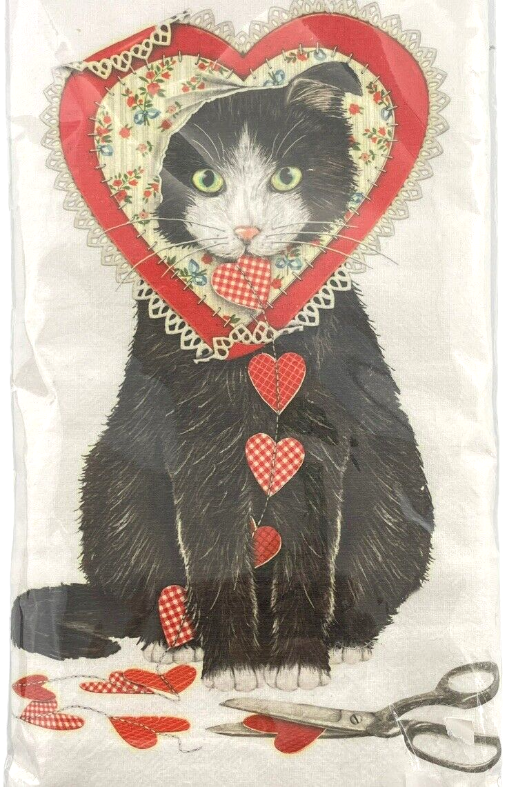 Mary Lake-Thompson Tea Towel Cat Hearts Fancy Flour Sack Dish Cloth Valentine