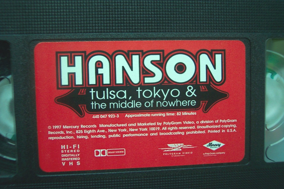 This is a VINTAGE HANSON Tulsa, Tokyo The Middle of Nowhere MUSIC TOUR VHS VIDEO from 1997. It has a run time of 82 minutes. It is in great condition. The case has very minor wear from use, but nothing major. Combine auctions to save on shipping. ELAG