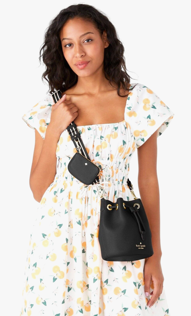 New Kate Spade Rosie Mini Bucket Bag Pebble Leather Black